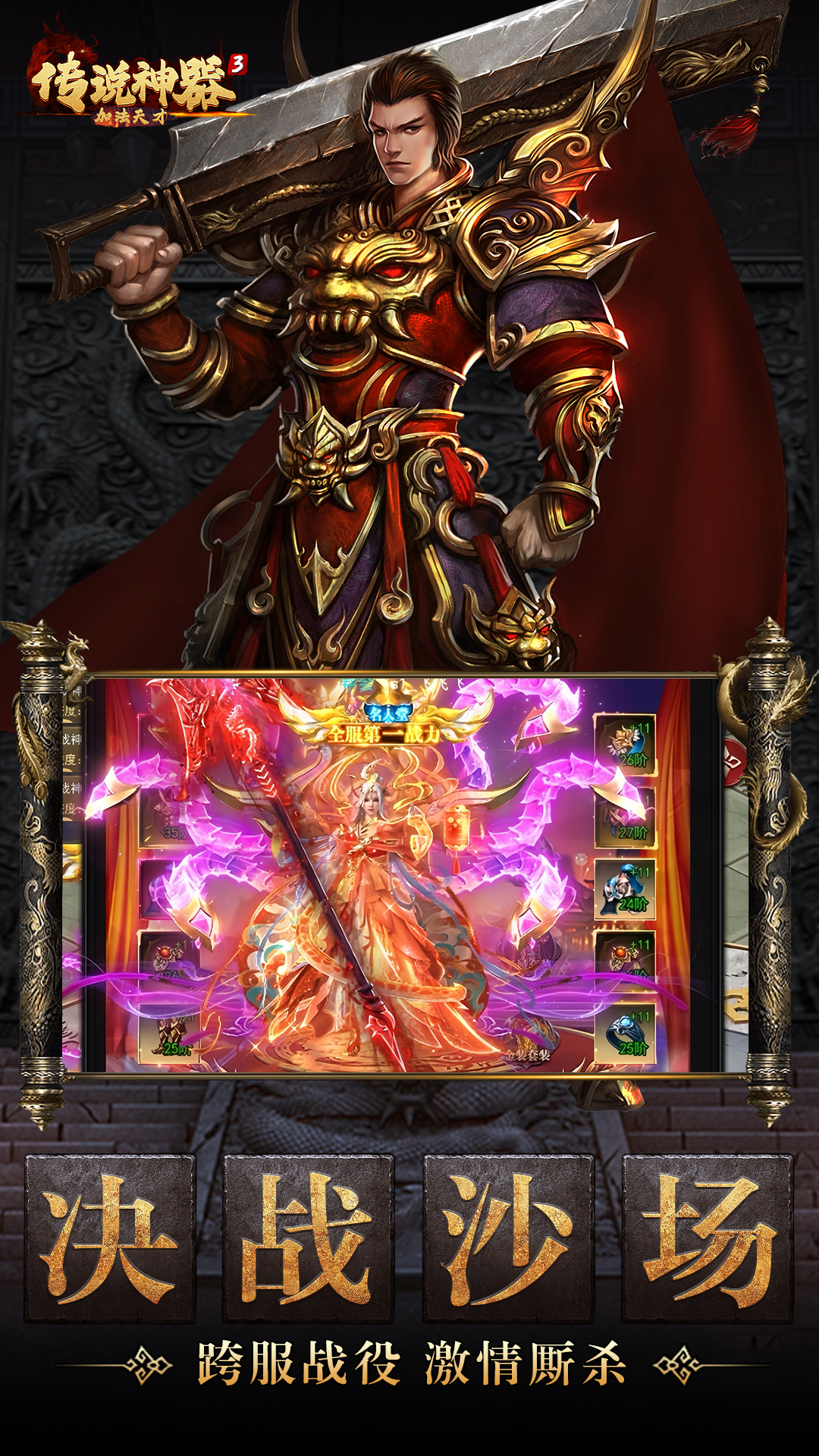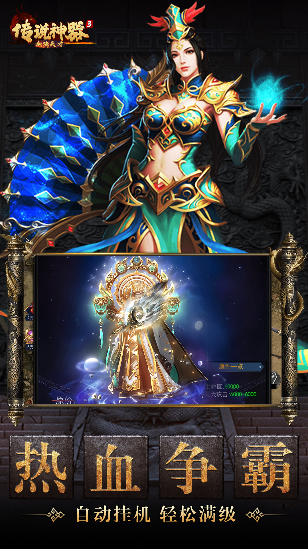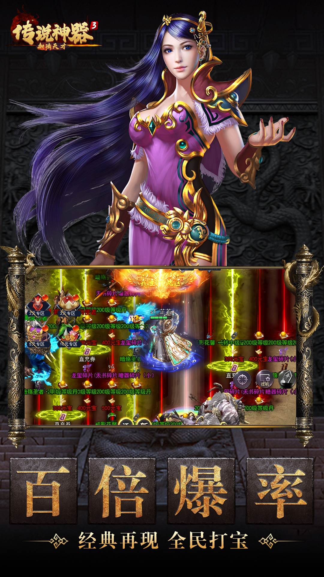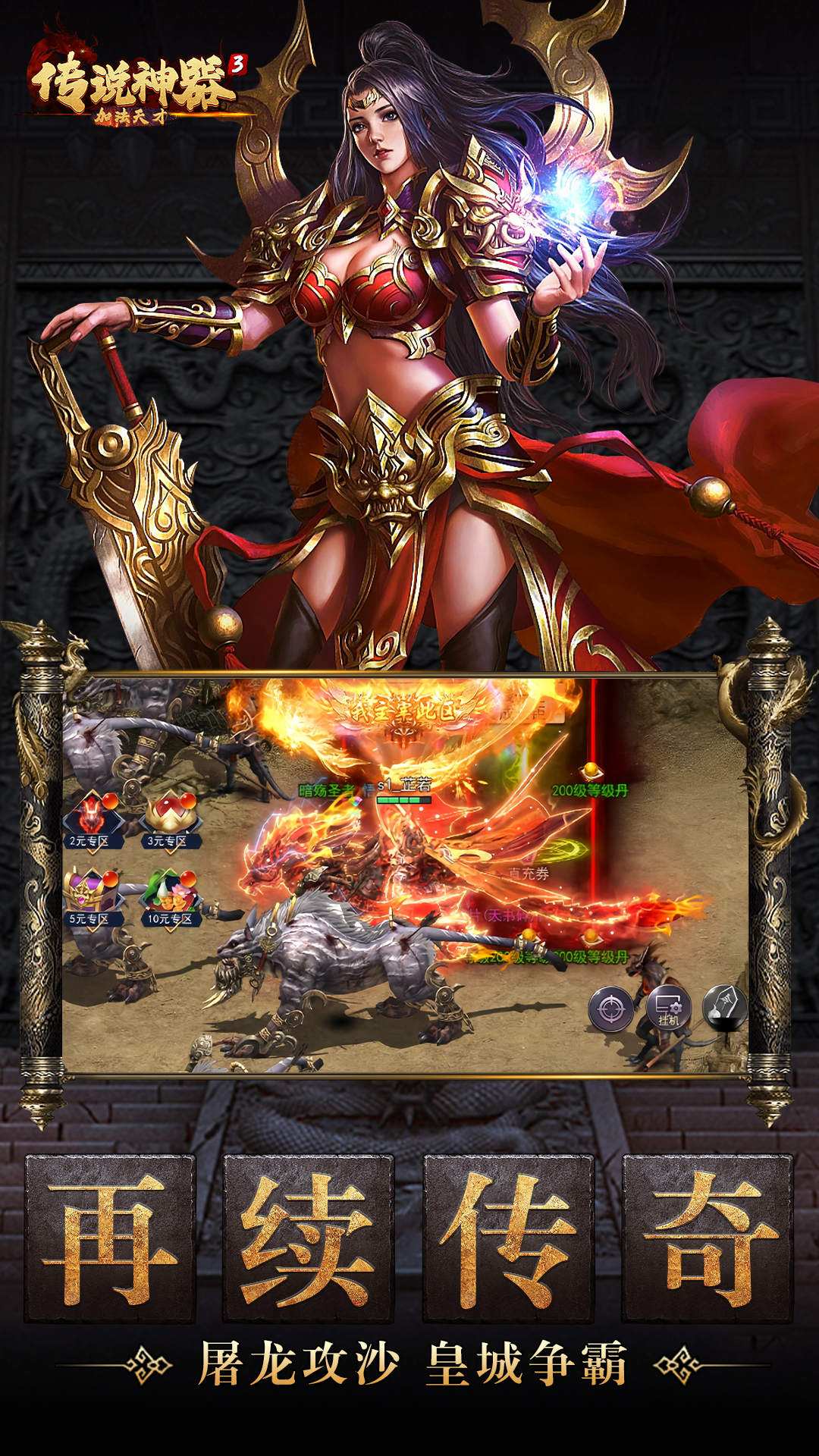 传奇经典重磅归来!全力打造更真实的画面、更丰富的玩法、更爽快的战斗。神装、传世、至尊专属装备霸气附体!外观拉风属性爆炸!兄弟一起来,打造最强帮会!无兄弟不传奇,一起创造辉煌!开启全民千人在线攻城,铸就王者霸业!